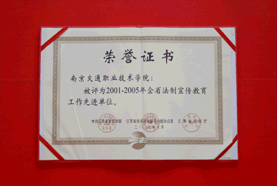近日,我院被中共江蘇省委宣傳部、江蘇省依法治省領(lǐng)導(dǎo)小組辦公室、江蘇省司法廳聯(lián)合表彰為“2001—2005年全省法制宣傳教育先進單位”。