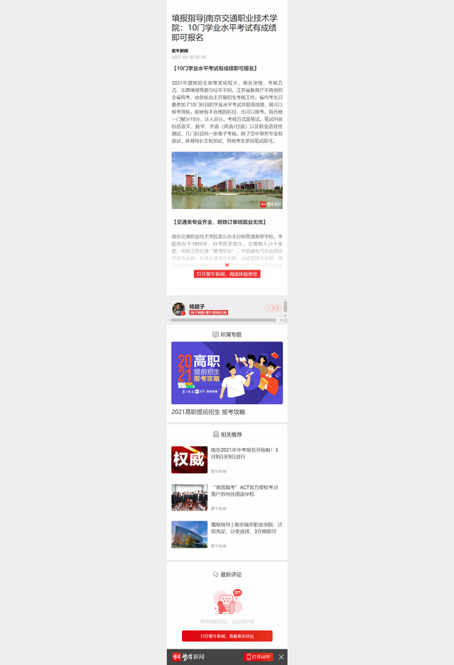 【紫牛新聞】填報(bào)指導(dǎo)|南京交通職業(yè)技術(shù)學(xué)院:10門學(xué)業(yè)水平考試有成績(jī)即可報(bào)名