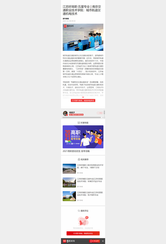 【紫牛新聞】江蘇好高職·五星專業(yè) | 南京交通職業(yè)技術(shù)學(xué)院:城市軌道交通機(jī)電技術(shù)