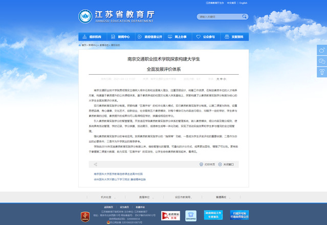 【江蘇省教育廳官網(wǎng)】南京交通職業(yè)技術(shù)學(xué)院探索構(gòu)建大學(xué)生全面發(fā)展評價體系