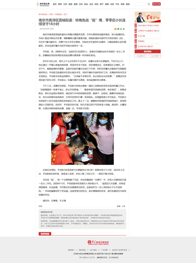 【新華報(bào)業(yè)網(wǎng)】南京市高淳區(qū)固城街道:轉(zhuǎn)角色戰(zhàn)“疫”情,零零后小伙連續(xù)堅(jiān)守18小時(shí)