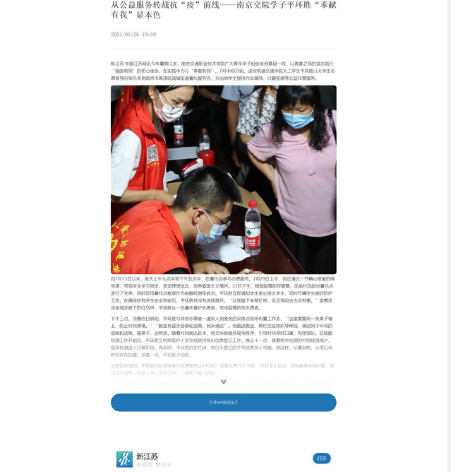 【新江蘇】從公益服務(wù)轉(zhuǎn)戰(zhàn)抗“疫”前線——南京交院學(xué)子平環(huán)勝“奉獻(xiàn)有我”顯本色