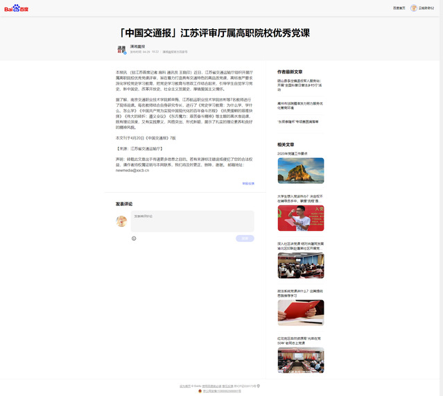 【中國交通報(bào)】江蘇評審廳屬高職院校優(yōu)秀黨課
