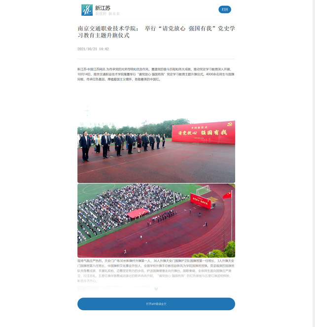 【新江蘇】南京交通職業(yè)技術(shù)學(xué)院: 舉行“請(qǐng)黨放心 強(qiáng)國(guó)有我”黨史學(xué)習(xí)教育主題升旗儀式