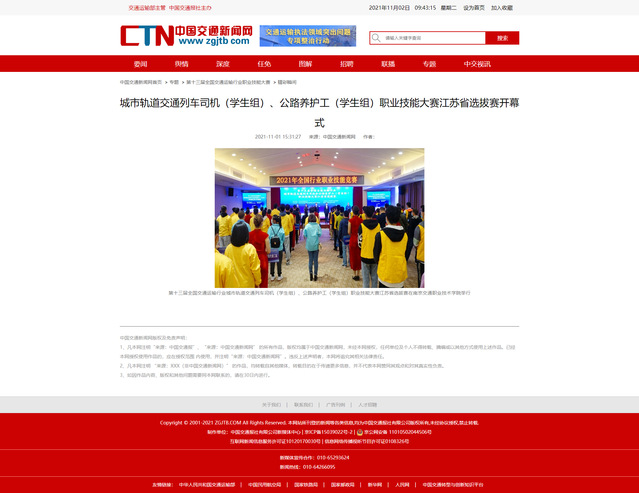 【中國(guó)交通新聞網(wǎng)】城市軌道交通列車(chē)司機(jī)(學(xué)生組)、公路養(yǎng)護(hù)工(學(xué)生組)職業(yè)技能大賽江蘇省選拔賽開(kāi)幕式