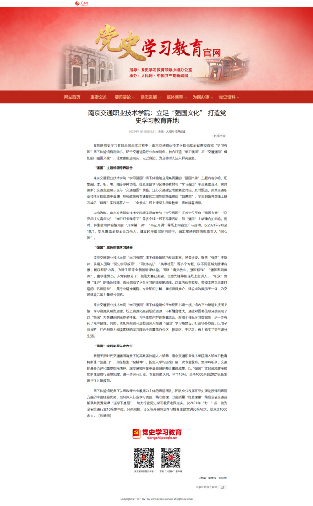 中央【黨史學(xué)習(xí)教育官網(wǎng)】南京交通職業(yè)技術(shù)學(xué)院:立足“強(qiáng)國(guó)文化” 打造黨史學(xué)習(xí)教育陣地