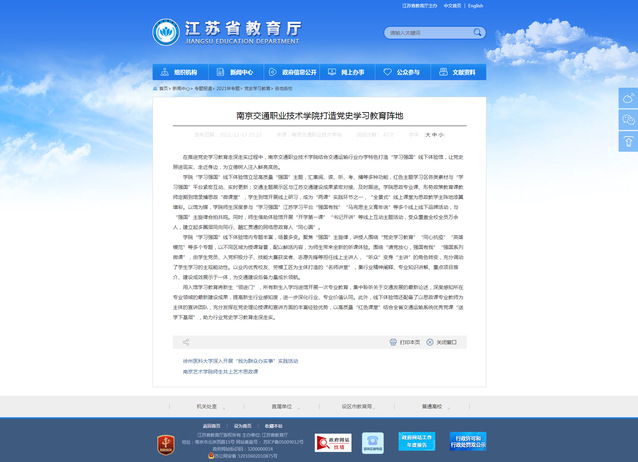 【江蘇省教育廳官網(wǎng)】南京交通職業(yè)技術(shù)學(xué)院打造黨史學(xué)習(xí)教育陣地