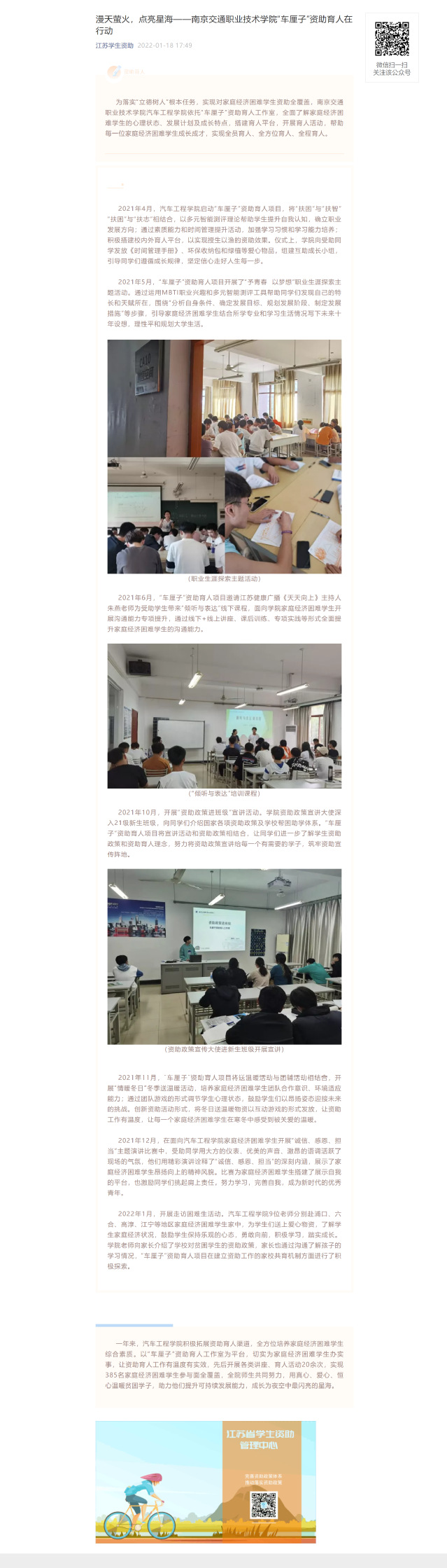 【江蘇學(xué)生資助】漫天螢火,點亮星?!暇┙煌殬I(yè)技術(shù)學(xué)院“車?yán)遄印辟Y助育人在行動