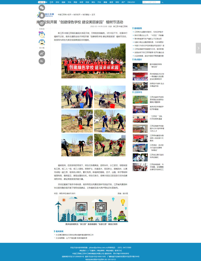 【中國江蘇網(wǎng)】南京交院開展“創(chuàng)建綠色學(xué)校 建設(shè)美麗家園”植樹節(jié)活動(dòng)