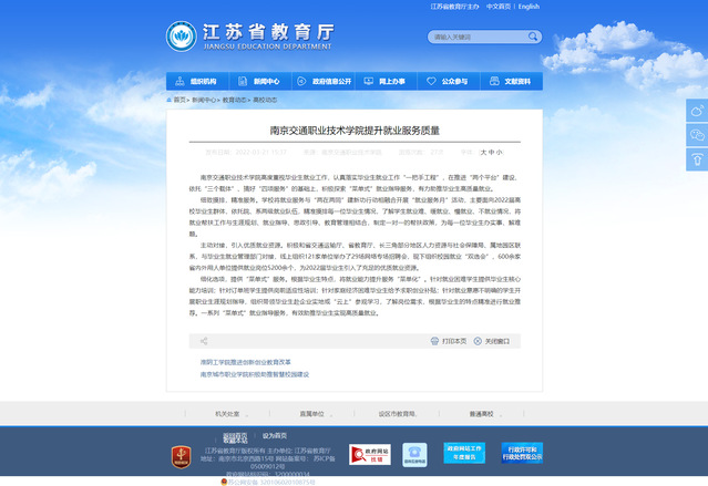 【江蘇省教育廳官網(wǎng)】南京交通職業(yè)技術(shù)學(xué)院提升就業(yè)服務(wù)質(zhì)量