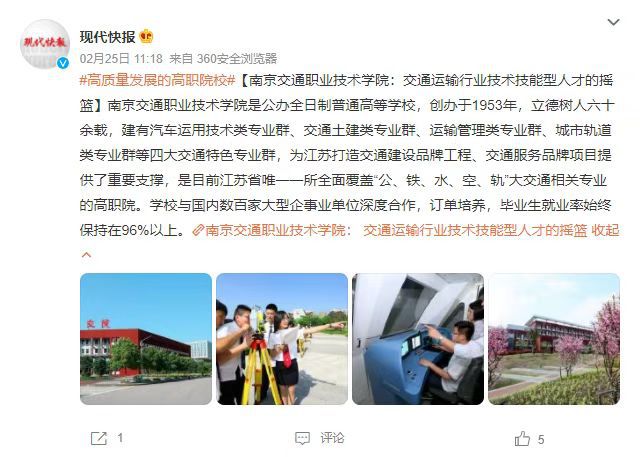 【現(xiàn)代快報微博】南京交通職業(yè)技術(shù)學(xué)院:交通運輸行業(yè)技術(shù)技能型人才的搖籃