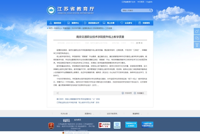 【江蘇省教育廳官網(wǎng)】南京交通職業(yè)技術(shù)學(xué)院提升線上教學(xué)質(zhì)量
