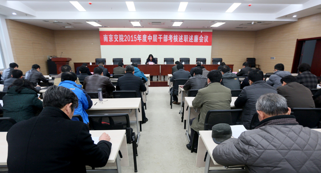 1月12日下午,學院2015年度中層干部考核會議在圖書館B203報告廳舉行。全體院領導和中層干部參加大會。會議由黨委書記賈俐俐主持。