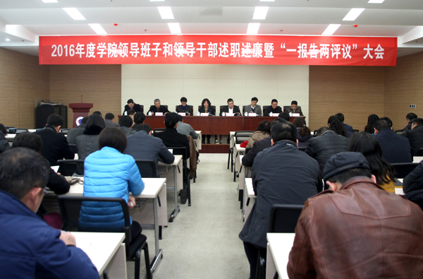 首先,賈俐俐書記代表學(xué)院導(dǎo)班子作2016年度述職述廉報告。報告指出,2016年學(xué)院堅持貫徹全面從嚴治黨新要求,抓好抓實省委巡視整改反饋意見,不斷加強內(nèi)涵建設(shè),深化改革,穩(wěn)步推進黨建和思想政治教育工作,學(xué)院發(fā)展態(tài)勢良好,各項工作進展順利。報告強調(diào),面對新形勢、新任務(wù),學(xué)院領(lǐng)導(dǎo)班子將進一步加強自身能力建設(shè),提高辦學(xué)治校能力,凝聚全院師生的力量,堅定信心、振奮精神、積極作為,以改革創(chuàng)新統(tǒng)攬全局,全面推進從嚴治黨向基層延伸,深化校風(fēng)建設(shè)和綜合改革,不斷提升學(xué)院整體辦學(xué)水平,以優(yōu)異的成績迎接黨的十九大勝利召開。