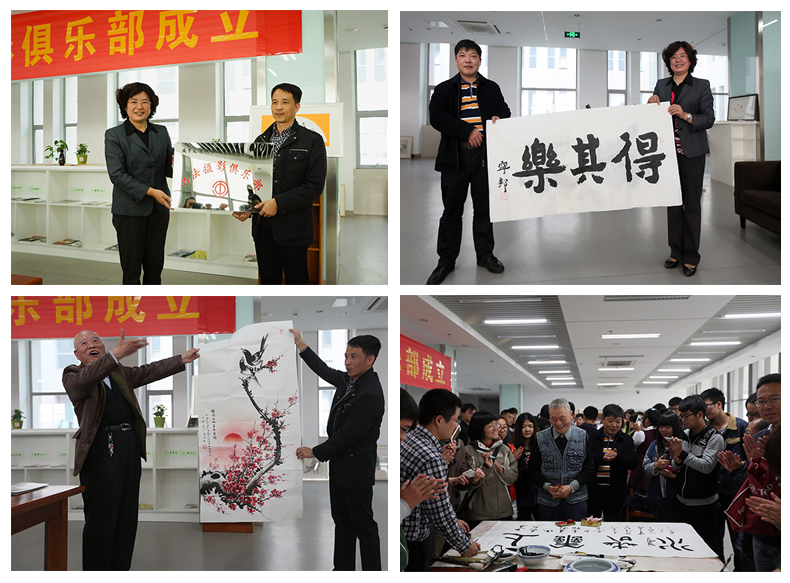 賈書記首先對書畫攝影俱樂部的成立表示祝賀,對俱樂部通過書畫、攝影等藝術(shù)活動豐富校園文化內(nèi)涵,構(gòu)建“幸福交院”工程提出了明確的要求,并作為榮譽會長給俱樂部授牌。藝術(shù)家代表劉仁通、施元龍老先生先后作了熱情洋溢的講話,并送上最新創(chuàng)作的書畫作品。