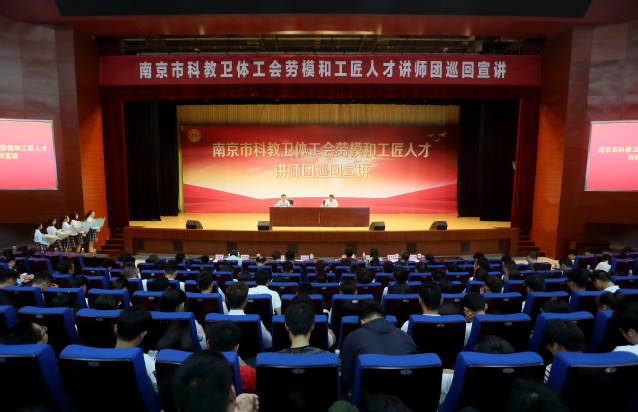 大力弘揚(yáng)新時(shí)代工匠精神,進(jìn)一步引導(dǎo)學(xué)院師生員工堅(jiān)守理想、潛心育人、敬業(yè)奉獻(xiàn),9月19日下午,南京市科教衛(wèi)體工會(huì)勞模和工匠人才講師團(tuán)來(lái)院開(kāi)展宣講活動(dòng)。院黨委副書記許正林,南京市科教衛(wèi)體工會(huì)主席唐醫(yī)文出席。500余名師生現(xiàn)場(chǎng)聆聽(tīng)了宣講報(bào)告。
