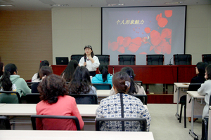 為豐富學(xué)院女教工業(yè)余文化生活,提高審美情趣,塑造個(gè)人靚麗形象,3月28日下午,院工會(huì)邀請(qǐng)國(guó)家級(jí)形象設(shè)計(jì)師解晴女士來(lái)院舉辦“發(fā)型設(shè)計(jì)、化妝與服飾搭配”專題講座,全院一百余名女教職工聆聽(tīng)了講座。