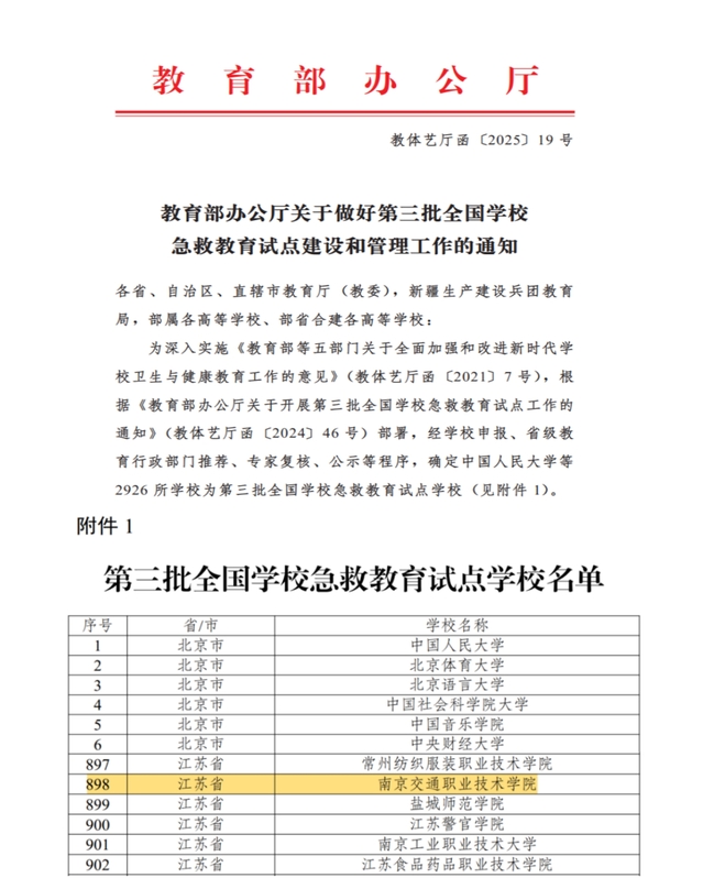 近日,教育部公布第三批全國學校急救教育試點學校名單,我院憑借扎實的急救教育基礎與創(chuàng)新實踐成功入選,標志著校園生命安全教育進入規(guī)范化、專業(yè)化發(fā)展新階段。