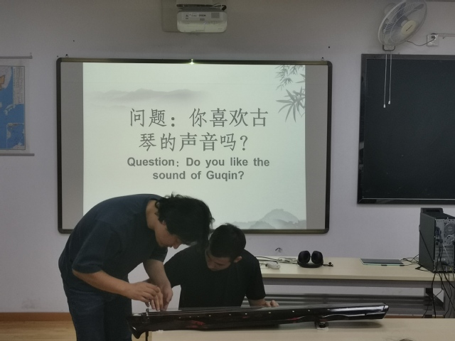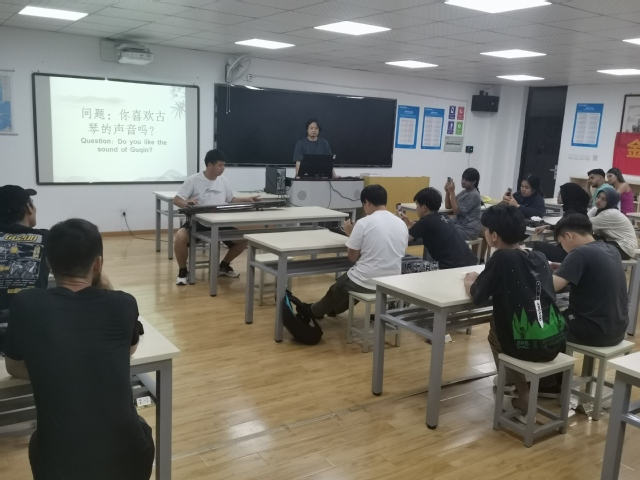 With historical allusions as a guide, Mr. Sun Chengdong comprehensively and carefully introduced the production technology and long history of guqin to foreign students, shared its development and inheritance status in China, and its status and influence in Chinese philosophy and aesthetics. The translation provided by teachers from the National Cooperative Office has effectively promoted communication and exchange between teachers and students. The Chinese students from the School of Architecture and Engineering played a melodious and meaningful song Nine Songs of Heaven, and the teacher Sun Chengdong played the Drunkenness, which made the students intoxicated and wandering. During the interactive activity that evening, international students enthusiastically asked questions and showed a strong interest in the art of guqin. With the encouragement and guidance of the teachers, international students have tried playing the guqin and experiencing the charm of intangible cultural heritage in the beautiful melody.