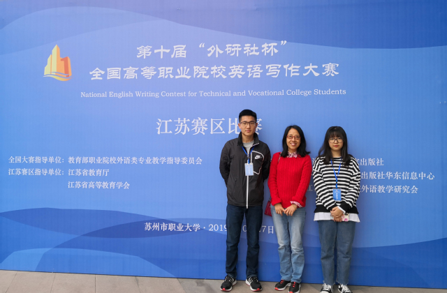 10月27日,由教育部職業(yè)院校外語類專業(yè)教學(xué)指導(dǎo)委員會、外語教學(xué)與研究出版社主辦,省教育廳指導(dǎo)的第十屆“外研社杯”全國高職高專英語寫作大賽(江蘇賽區(qū)復(fù)賽)在蘇州舉行。學(xué)院選送的運(yùn)輸管理學(xué)院1830231班吳儀、張津瑞同學(xué)表現(xiàn)出色,分獲大賽公共英語組二等獎、三等獎,蔣曙老師榮獲優(yōu)秀指導(dǎo)教師獎。