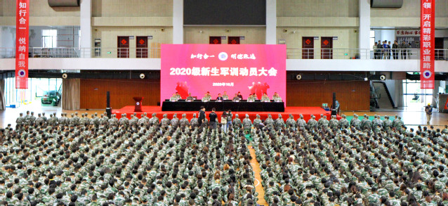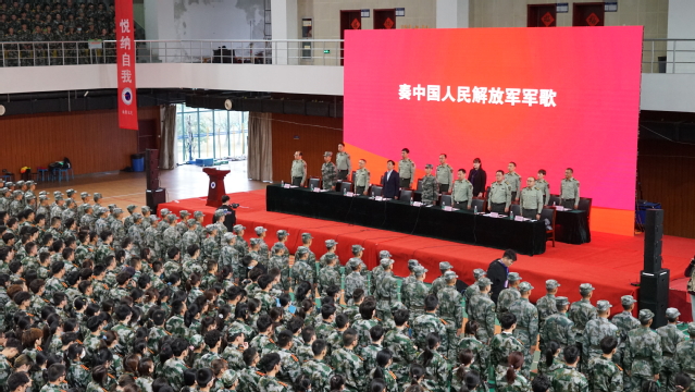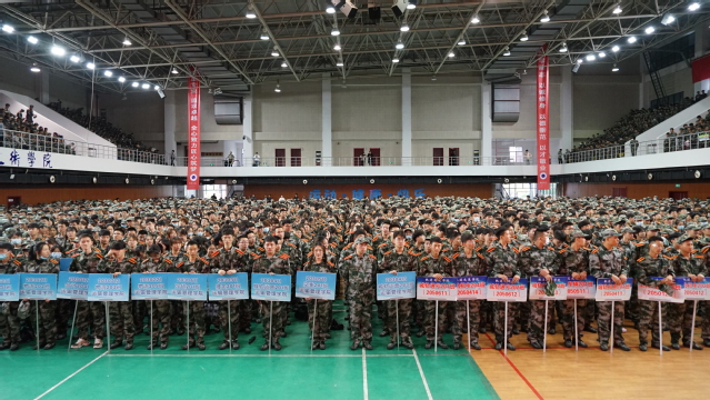 10月16日下午,學(xué)院2020級(jí)新生軍訓(xùn)動(dòng)員大會(huì)在行健館隆重舉行。學(xué)院副院長(zhǎng)、新生軍訓(xùn)工作領(lǐng)導(dǎo)小組組長(zhǎng)王道峰,73211部隊(duì)副參謀長(zhǎng)、新生軍訓(xùn)工作領(lǐng)導(dǎo)小組組長(zhǎng)李林,73211部隊(duì)五營教導(dǎo)員、新生軍訓(xùn)團(tuán)團(tuán)長(zhǎng)茆健寧以及軍訓(xùn)工作領(lǐng)導(dǎo)小組全體成員出席大會(huì),軍訓(xùn)團(tuán)各級(jí)指戰(zhàn)員以及全體參訓(xùn)新生等4200余人參加了動(dòng)員會(huì)。