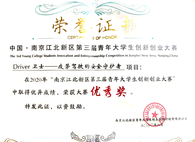8月7日,贏在南京——江北新區(qū)第三屆青年大學(xué)生創(chuàng)新創(chuàng)業(yè)大賽在江北新區(qū)管委會(huì)閉幕,學(xué)院參賽項(xiàng)目《Driver衛(wèi)士—疲勞駕駛的守護(hù)者》(團(tuán)隊(duì)成員:蔡志維、鐘垚、鄭堯春、程思威,指導(dǎo)老師:王雪琴、吳士力)從612個(gè)項(xiàng)目中成功入圍前30名進(jìn)入決賽,獲得第16名,并獲1萬元項(xiàng)目啟動(dòng)資金。