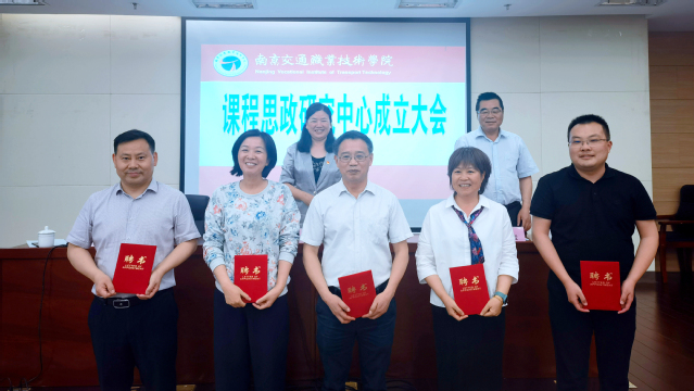張毅院長(zhǎng)宣讀了《關(guān)于成立南京交通職業(yè)技術(shù)學(xué)院課程思政研究中心的通知》;賈俐俐書記,張毅院長(zhǎng)共同為研究中心揭牌,并給研究中心成員頒發(fā)了聘書。