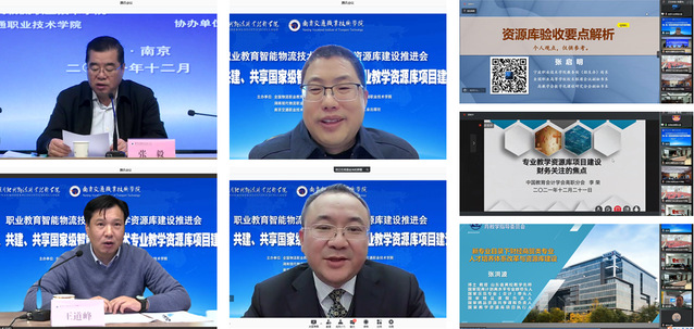 12 月 21日、22日,由全國物流職業(yè)教育教學(xué)指導(dǎo)委員會、湖南現(xiàn)代物流職業(yè)技術(shù)學(xué)院、南京交通職業(yè)技術(shù)學(xué)院聯(lián)合主辦,南京交通職業(yè)技術(shù)學(xué)院承辦的職業(yè)教育智能物流技術(shù)專業(yè)教學(xué)資源庫建設(shè)推進會成功召開。受疫情影響,會議以騰訊會議方式開展, 14家聯(lián)建單位共同參會,在云端共商、共建、共享國家級智能物流技術(shù)專業(yè)教學(xué)資源庫項目建設(shè)。學(xué)院張毅院長,王道峰副院長出席會議;辦公室、財務(wù)處、教務(wù)處、運輸管理學(xué)院相關(guān)負(fù)責(zé)人及教師代表參加。會議由王道峰副院長主持。