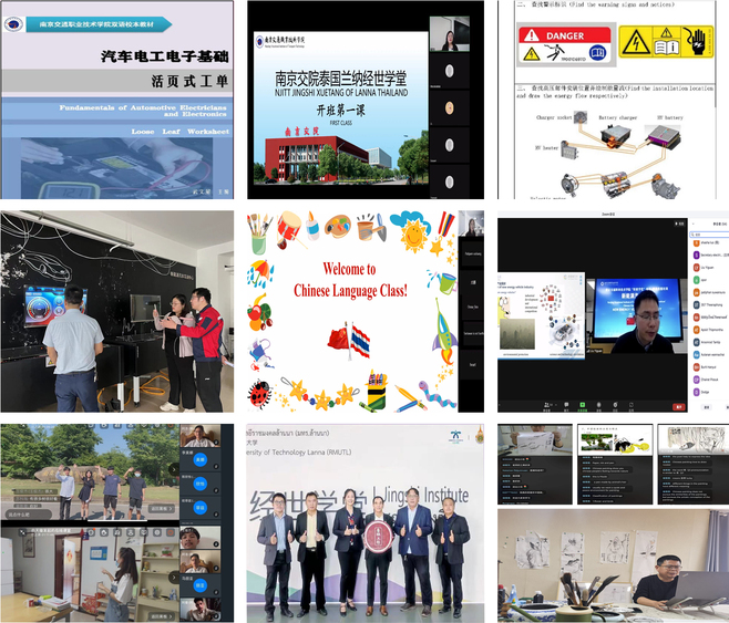 項(xiàng)目自啟動以來,校-校-企三方克服疫情等諸多困難,破解“教師走不出去、學(xué)生進(jìn)不來”困境,嚴(yán)格對照《魯班工坊建設(shè)規(guī)程》,明確中泰新能源汽車檢測與維修技術(shù)魯班工坊的發(fā)展定位,在建設(shè)宗旨、辦學(xué)基礎(chǔ)、場地建設(shè)、師資隊(duì)伍、教學(xué)資源、校企合作和辦學(xué)成效等方面做了一系列的探索與實(shí)踐,取得了階段性的建設(shè)成果。先后完成了南京交通職業(yè)技術(shù)學(xué)院-蘭納皇家理工大學(xué)經(jīng)世學(xué)堂基礎(chǔ)環(huán)境建設(shè)、新能源汽車檢測與維修專業(yè)海外實(shí)訓(xùn)室的建設(shè);共同制定了“新能源汽車檢測與維修技術(shù)(中泰合作)”人才培養(yǎng)方案,開發(fā)了《汽車電工電子基礎(chǔ)》、《新能源汽車構(gòu)造》等國際化課程和教學(xué)資源等;完成了海外創(chuàng)新班招生開班,采取“1+2+1”模式進(jìn)行國際化人才培養(yǎng);采取“云課堂+云參觀+云交流”等多種方式,開展?jié)h語課程教學(xué)和人文交流活動。立足汽車行業(yè),挖掘“鄭和精神”,語言教學(xué)中融入中華優(yōu)秀傳統(tǒng)、職業(yè)道德、工匠精神等元素;開展了中外學(xué)生“同讀一本書”、非遺文化沉浸式體驗(yàn)、開學(xué)第一課校園參觀等文化交流活動,實(shí)現(xiàn)了中泰師生間良好互動和文化互鑒。