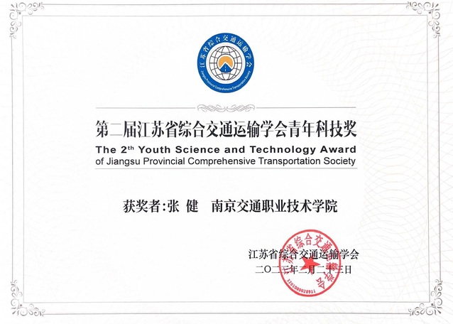 建筑工程學(xué)院張健教授榮獲江蘇省綜合交通運輸學(xué)會青年科技獎。