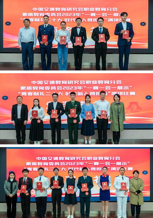 會議期間,與會的全國18所交通職業(yè)院校學(xué)生代表參加了“青春獻(xiàn)禮二十大 時(shí)代新人勇?lián)?dāng)”演講比賽決賽。選手們的演講主旨鮮明,立意新穎,內(nèi)涵豐富,表達(dá)流暢,彰顯了新時(shí)代交通青年的風(fēng)采。經(jīng)過激烈角逐,南京交通職業(yè)技術(shù)學(xué)院、湖南交通職業(yè)技術(shù)學(xué)院、新疆交通職業(yè)技術(shù)學(xué)院、山東交通職業(yè)學(xué)院、湖北交通職業(yè)技術(shù)學(xué)院的選手榮獲一等獎(jiǎng),陜西交通職業(yè)技術(shù)學(xué)院、四川交通職業(yè)技術(shù)學(xué)院、江蘇航運(yùn)職業(yè)技術(shù)學(xué)院、廣西交通職業(yè)技術(shù)學(xué)院、浙江交通職業(yè)技術(shù)學(xué)院、江西交通職業(yè)技術(shù)學(xué)院的選手榮獲二等獎(jiǎng),吉林交通職業(yè)技術(shù)學(xué)院、江蘇省無錫交通高等職業(yè)技術(shù)學(xué)校、廣東交通職業(yè)技術(shù)學(xué)院、福建船政交通職業(yè)學(xué)院、河北交通職業(yè)技術(shù)學(xué)院、天津海運(yùn)職業(yè)學(xué)院、江蘇海事職業(yè)技術(shù)學(xué)院的選手榮獲三等獎(jiǎng)。