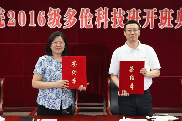 黨委書記賈俐俐與南京多倫科技股份有限公司總裁助理宋智先生共同簽訂《校企合作協(xié)議書》,并為“多倫科技班”揭牌。宋智先生在會上介紹了南京多倫科技有限公司的發(fā)展歷程,以及與交院的歷史淵源。他希望同學們能珍惜機遇,調(diào)整觀念,刻苦學習,為將來走上工作崗位打下堅實的專業(yè)基礎。