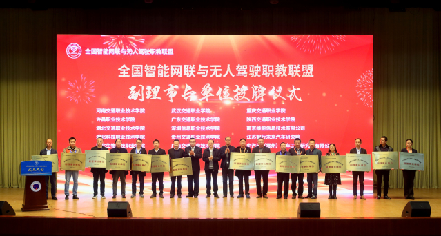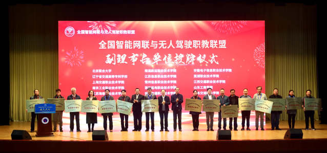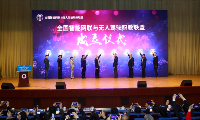與會(huì)領(lǐng)導(dǎo)共同啟動(dòng)聯(lián)盟成立儀式,并授發(fā)了聯(lián)盟副理事長單位牌匾。大會(huì)報(bào)告了聯(lián)盟籌備情況,審議并通過了聯(lián)盟章程和聯(lián)盟理事機(jī)構(gòu)。聯(lián)盟成員單位代表先后聆聽了學(xué)術(shù)報(bào)告,聯(lián)盟專業(yè)建設(shè)、技能競賽、產(chǎn)教融合、創(chuàng)新創(chuàng)業(yè)工作組報(bào)告,參加了無人駕駛車輛試乘體驗(yàn)活動(dòng)。
