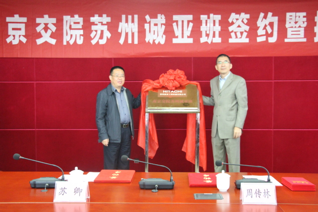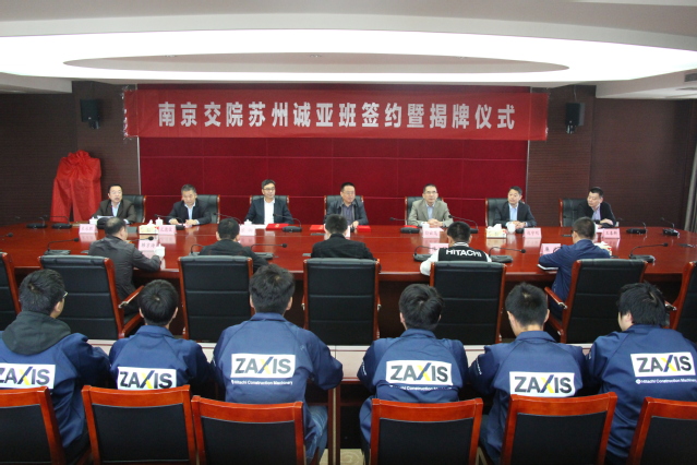 10月24日上午,現(xiàn)代學(xué)徒制“南京交院蘇州誠(chéng)亞班”簽約揭牌儀式在弘毅樓隆重舉行。蘇州誠(chéng)亞工程機(jī)械有限公司蘇卿總經(jīng)理、服務(wù)部王春新部長(zhǎng),青島誠(chéng)日建機(jī)有限公司白云龍副總經(jīng)理、隋文軍主任,上海日立產(chǎn)品支援本部教育部孔德俊部長(zhǎng)、技術(shù)部趙守剛部長(zhǎng),南京交院院周傳林副院長(zhǎng)、軌道交通學(xué)院領(lǐng)導(dǎo)、老師及15名蘇州誠(chéng)亞準(zhǔn)員工參加此次會(huì)議。會(huì)議由軌道交通學(xué)院米永勝院長(zhǎng)主持。