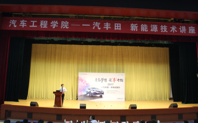 一汽豐田周志惟主管和朱紅波課長通過對(duì)汽車能源、工業(yè)、市場的的現(xiàn)狀分析,和中國豐田引進(jìn)雙擎技術(shù)的歷史的介紹,深入剖析了混合動(dòng)力的工作原理,揭示了新能源技術(shù)發(fā)展的必然趨勢(shì)。陳星宇經(jīng)理介紹了豐田校園創(chuàng)意大賽方案,鼓勵(lì)同學(xué)們善于觀察,勇于創(chuàng)新,積極參加豐田校園創(chuàng)意大賽。