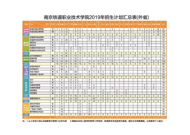 南京鐵道職業(yè)技術(shù)學(xué)院2019年跨省招生計劃一覽表