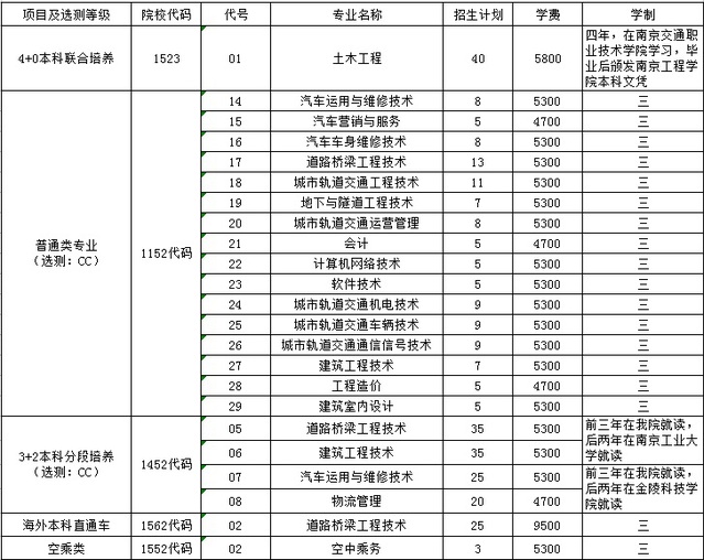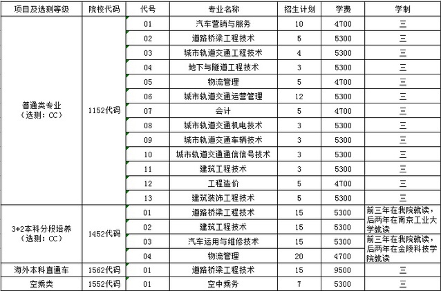 南京交通職業(yè)技術(shù)學(xué)院2018年江蘇省普高招生計(jì)劃