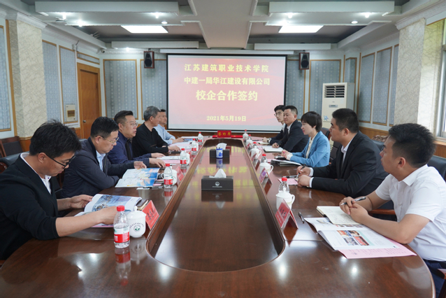 5月19日上午,中建一局華江建設(shè)有限公司董事會(huì)秘書、人力資源部經(jīng)理許憲陽(yáng)等一行5人來(lái)校簽約并選拔首屆“華江班”學(xué)員。學(xué)校副院長(zhǎng)劉海波,建筑建造學(xué)院、建筑裝飾學(xué)院、交通工程學(xué)院、校企合作處等部門負(fù)責(zé)人參加簽約儀式。