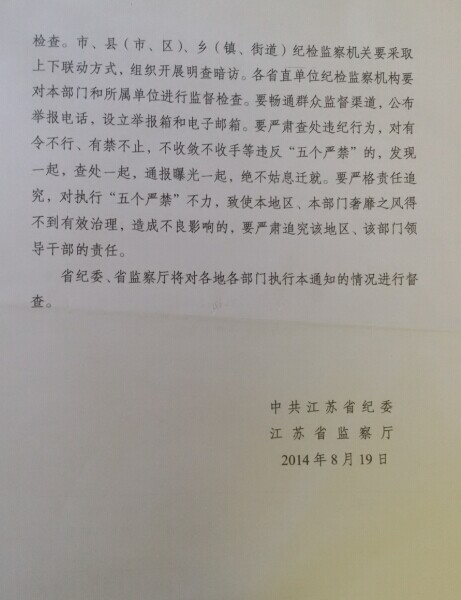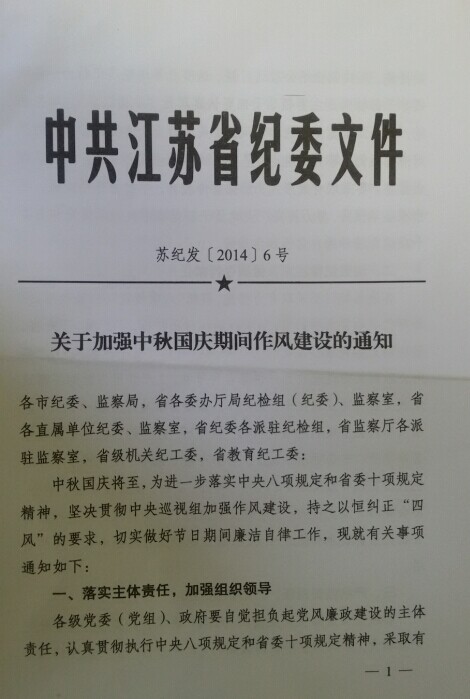 江蘇省紀(jì)委《關(guān)于加強(qiáng)中秋國(guó)慶期間作風(fēng)建設(shè)的通知》