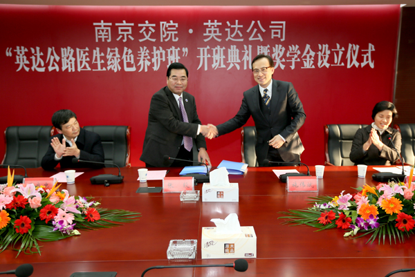 11月13日下午,南京交院•英達(dá)公司“英達(dá)公路醫(yī)生綠色養(yǎng)護(hù)班”開班典禮暨獎(jiǎng)學(xué)金簽約儀式在弘毅樓321隆重召開。院長(zhǎng)張毅、英達(dá)公司施偉斌總裁一行出席儀式。路橋工程系相關(guān)負(fù)責(zé)人、養(yǎng)護(hù)及相關(guān)專業(yè)教師及訂單班全體學(xué)生參加了儀式。儀式由路橋工程系蔣玲主任主持。