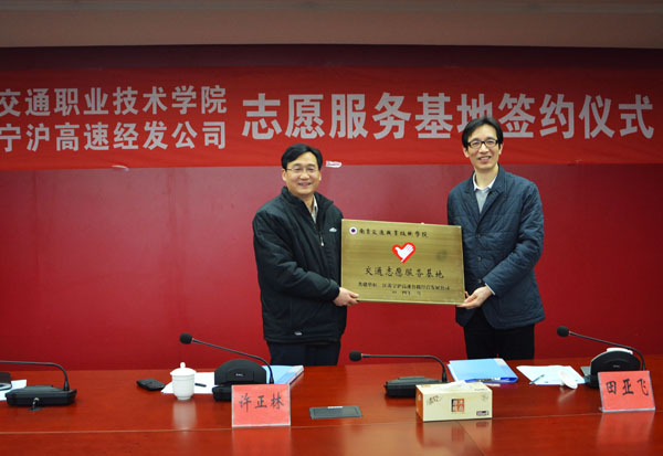 3月5日下午,我校與江蘇寧滬高速經(jīng)營(yíng)發(fā)展公司共建志愿服務(wù)基地簽約揭牌儀式在弘毅樓321會(huì)議室舉行,江蘇寧滬高速公路股份有限公司田亞飛副總經(jīng)理、我校黨委副書(shū)記許正林代表雙方簽署了共建協(xié)議并揭牌。寧滬高速團(tuán)委負(fù)責(zé)同志,我校學(xué)工處、團(tuán)委負(fù)責(zé)人、志愿者代表參加了活動(dòng)。