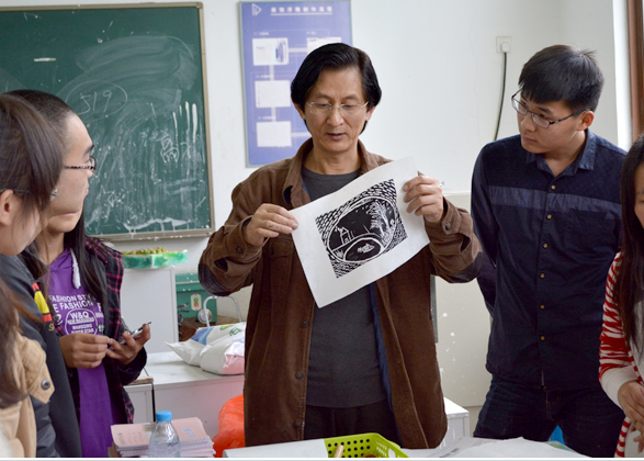 4月23日下午,江蘇省美術(shù)館國(guó)家一級(jí)美術(shù)師陳超先生做客我校,在明德樓報(bào)告廳為作了題為“與時(shí)俱進(jìn)的中國(guó)版畫(huà)”的專(zhuān)題藝術(shù)講座。講座以版畫(huà)家自身的創(chuàng)作感悟?yàn)榍腥朦c(diǎn),介紹中國(guó)現(xiàn)代版畫(huà)的發(fā)展軌跡,在歷史與現(xiàn)代的交融中,傳遞出當(dāng)代版畫(huà)家對(duì)原創(chuàng)版畫(huà)的價(jià)值堅(jiān)持與繼承創(chuàng)新。講座結(jié)束后,陳老師親自指導(dǎo)學(xué)生體驗(yàn)版畫(huà)制作。在陳老師的示范下,體驗(yàn)者們初步掌握了版畫(huà)制作的技巧,并且展示自己的創(chuàng)作作品。