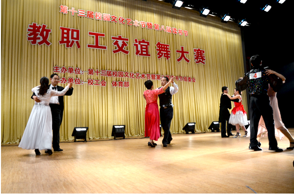 5月19日晚,校體育教研部承辦的首屆“教職工交誼舞大賽”在圖書館報(bào)告廳舉行。全體校領(lǐng)導(dǎo)及藝術(shù)節(jié)組委會成員、眾多師生一起觀看了比賽。交誼舞是集健身、健心、健美、益智、提高生活品位、提升全民素質(zhì)、促進(jìn)社會和諧健康發(fā)展的一種創(chuàng)新舞蹈文化。此次比賽全校共有11個(gè)分工會,12對選手參加。比賽分為規(guī)定舞步(慢三步)和自選舞步。選手們在“大海啊,故鄉(xiāng)”慢三步的樂曲中翩翩起舞,時(shí)而延伏、傾斜,時(shí)而波浪、擺蕩,給人一種美的享受。 在自選舞步中各顯身手,小拉舞、恰恰舞、四步舞,編排新穎獨(dú)特。經(jīng)過兩輪的角逐,體育部直屬工會史立峰、任忠芳兩位選手,基礎(chǔ)教學(xué)部分工會焦圣華、沈月輝、李揚(yáng)、周潔4位選手榮獲一等獎(jiǎng)。