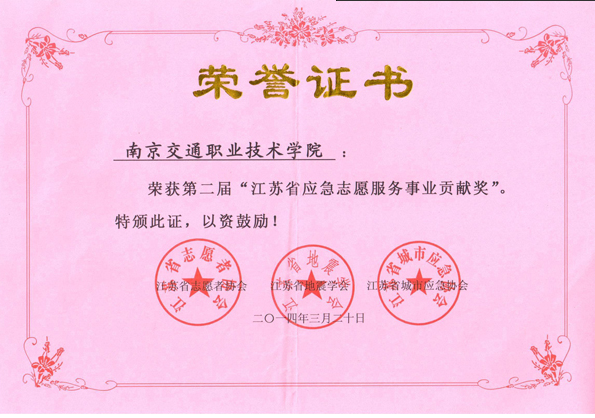 近日,江蘇省志愿者協(xié)會(huì)、江蘇省地震學(xué)會(huì)、江蘇省城市應(yīng)急協(xié)會(huì)聯(lián)合下發(fā)了《關(guān)于表彰第二屆江蘇省優(yōu)秀應(yīng)急志愿者、優(yōu)秀應(yīng)急志愿服務(wù)組織的決定》,我校榮獲“第二屆江蘇省應(yīng)急志愿服務(wù)事業(yè)貢獻(xiàn)獎(jiǎng)”。