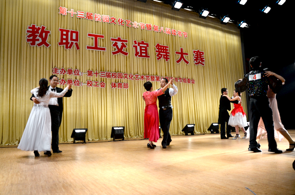 5月19日晚,校體育教研部承辦的首屆“教職工交誼舞大賽”在圖書館報告廳舉行。全體校領導及藝術節(jié)組委會成員、眾多師生一起觀看了比賽。交誼舞是集健身、健心、健美、益智、提高生活品位、提升全民素質、促進社會和諧健康發(fā)展的一種創(chuàng)新舞蹈文化。此次比賽全校共有11個分工會,12對選手參加。比賽分為規(guī)定舞步(慢三步)和自選舞步。選手們在“大海啊,故鄉(xiāng)”慢三步的樂曲中翩翩起舞,時而延伏、傾斜,時而波浪、擺蕩,給人一種美的享受。 在自選舞步中各顯身手,小拉舞、恰恰舞、四步舞,編排新穎獨特。經過兩輪的角逐,體育部直屬工會史立峰、任忠芳兩位選手,基礎教學部分工會焦圣華、沈月輝、李揚、周潔4位選手榮獲一等獎。