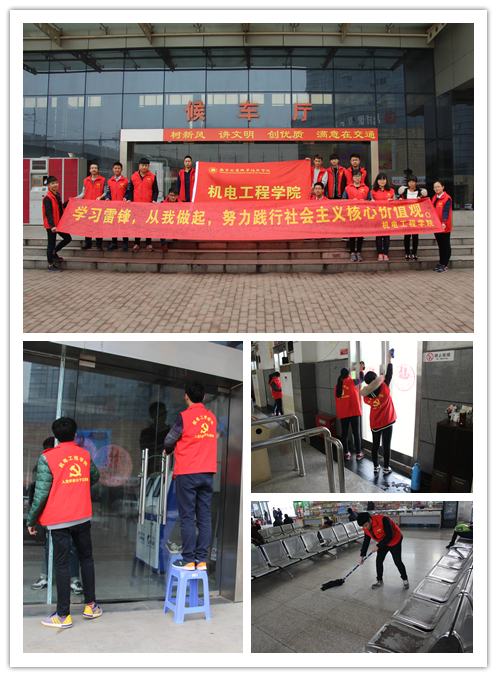 3月4日上午,機(jī)電工程學(xué)院16名志愿者來到江寧客運(yùn)站,進(jìn)行美化客運(yùn)站清潔服務(wù)活動(dòng)。勤勞的雙手換來的是干凈明亮的環(huán)境和人們臉上感激的笑臉,沒有什么比這更讓人體會(huì)到因?yàn)榉瞰I(xiàn)的快樂。
