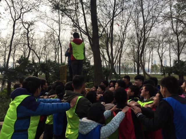 9點30分,素質(zhì)拓展正式開始,全體成員被分成了3支隊伍,隨后在教官的幫助下各隊進行了團隊文化建設(shè),選拔出了隊長、確定了隊名、團隊口號及隊logo,并接受教練的檢閱。在一天里,大家分別進行了看圖猜數(shù)字、花開花落、信任背摔、5分鐘競爭、穿越電網(wǎng)等多個項目。在素質(zhì)拓展活動中,隊友間的團隊意識逐漸顯露,在競賽項目中隊員們的創(chuàng)新意識不斷被激起,在信任背摔項目中隊員們可以充分感受到勇敢和信任的力量,穿越電網(wǎng)項目中隊員集思廣益,共同協(xié)作,團隊意識無形中不斷提高。