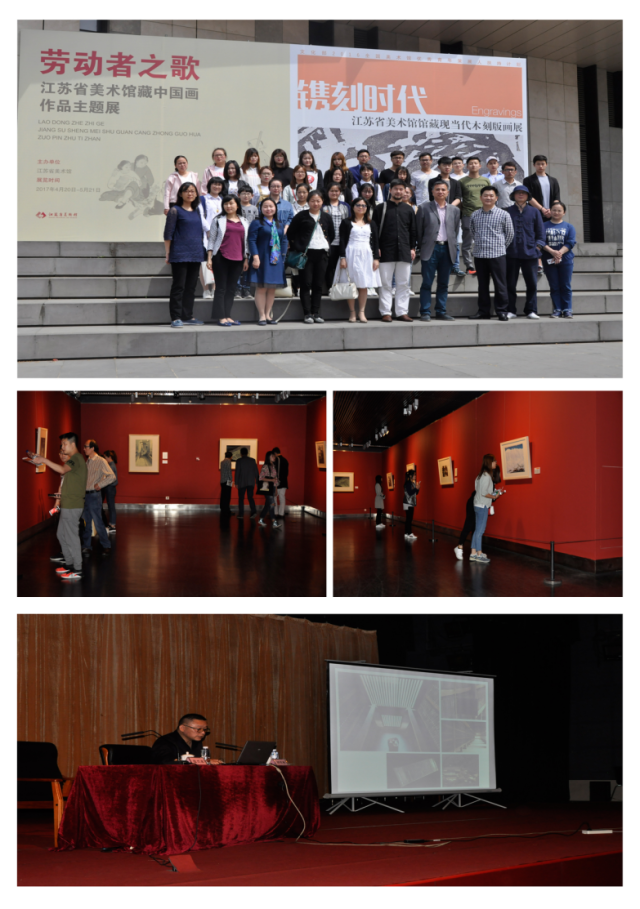 講座結束后,師生一行參觀了主題為“鐫刻時代”的江蘇省美術館館藏現(xiàn)當代木刻版畫展。展出的近40位藝術家的70余幅版畫作品,如同一幅幅時代的剪影,串聯(lián)著幾代版畫家們對藝術人生的火熱激情和細膩體驗。通過零距離接觸藝術珍品,使學生對于木刻版畫的藝術構成、發(fā)展歷史有了更直觀的了解,開啟了他們感受更豐富的藝術形式,追求更崇高的藝術境界,激發(fā)更濃厚的藝術熱情之路。