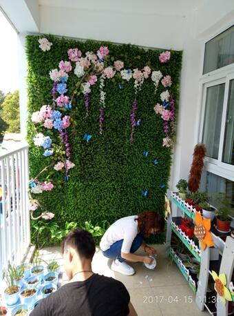 志愿服務(wù)進(jìn)行了2個(gè)多小時(shí)的義務(wù)工作,組合拼裝了仿真草坪,將草坪釘在墻上,從后院挖來(lái)泥土,將盆栽移植到里面。此次活動(dòng)學(xué)生干部不僅得到了鍛煉,而且為幼兒園的小朋友傳播綠化環(huán)保的知識(shí),參加志愿服務(wù)的學(xué)生干部紛紛表示此次活動(dòng)對(duì)學(xué)生的成長(zhǎng)非常有幫助。