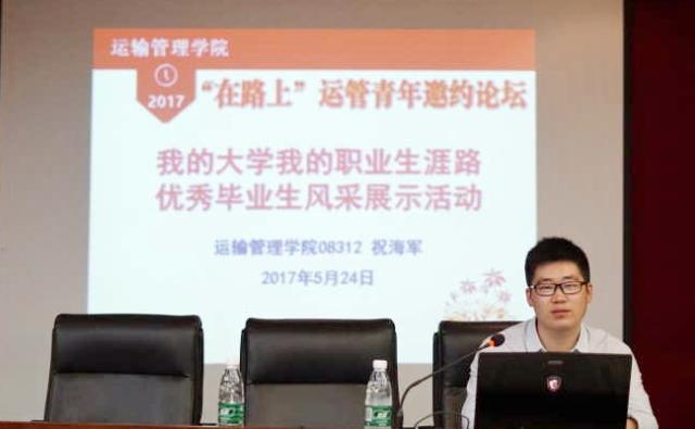 2017年5月24日下午14時(shí),運(yùn)輸管理學(xué)院于明德樓報(bào)告廳舉行了“在路上”—運(yùn)管青年邀約論壇講座活動(dòng),由我院083012班祝海軍同學(xué)為全校300名同學(xué)做了精彩的報(bào)告。